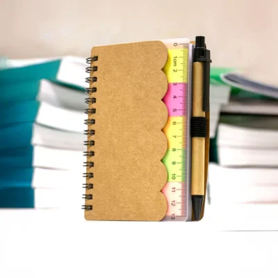 This A6 Craft Notebook is designed for convenience and versatility, making it the perfect tool for note-taking, sketching, or planning. The notebook features a sturdy kraft cover with a built-in scale for quick measurements, a sleek pen holder that includes an eco-friendly pen, and bright, sticky Post-it notes for added functionality. Ideal for students, professionals, and creatives alike, this notebook fits easily into any bag and is an essential item for staying organized.